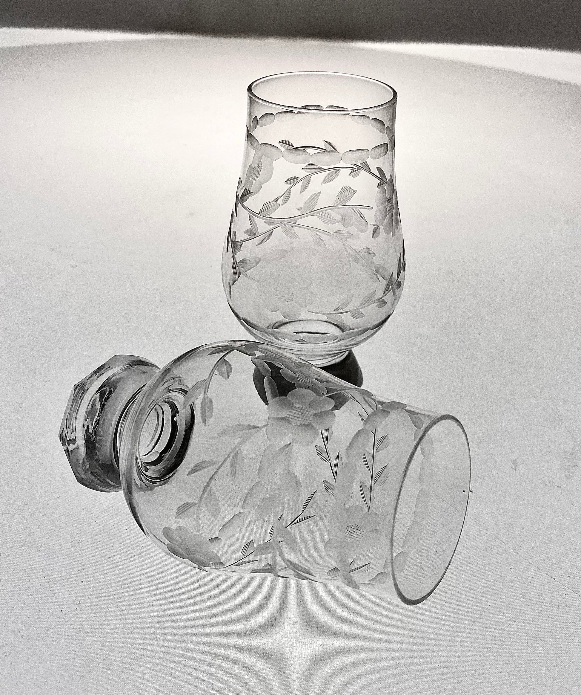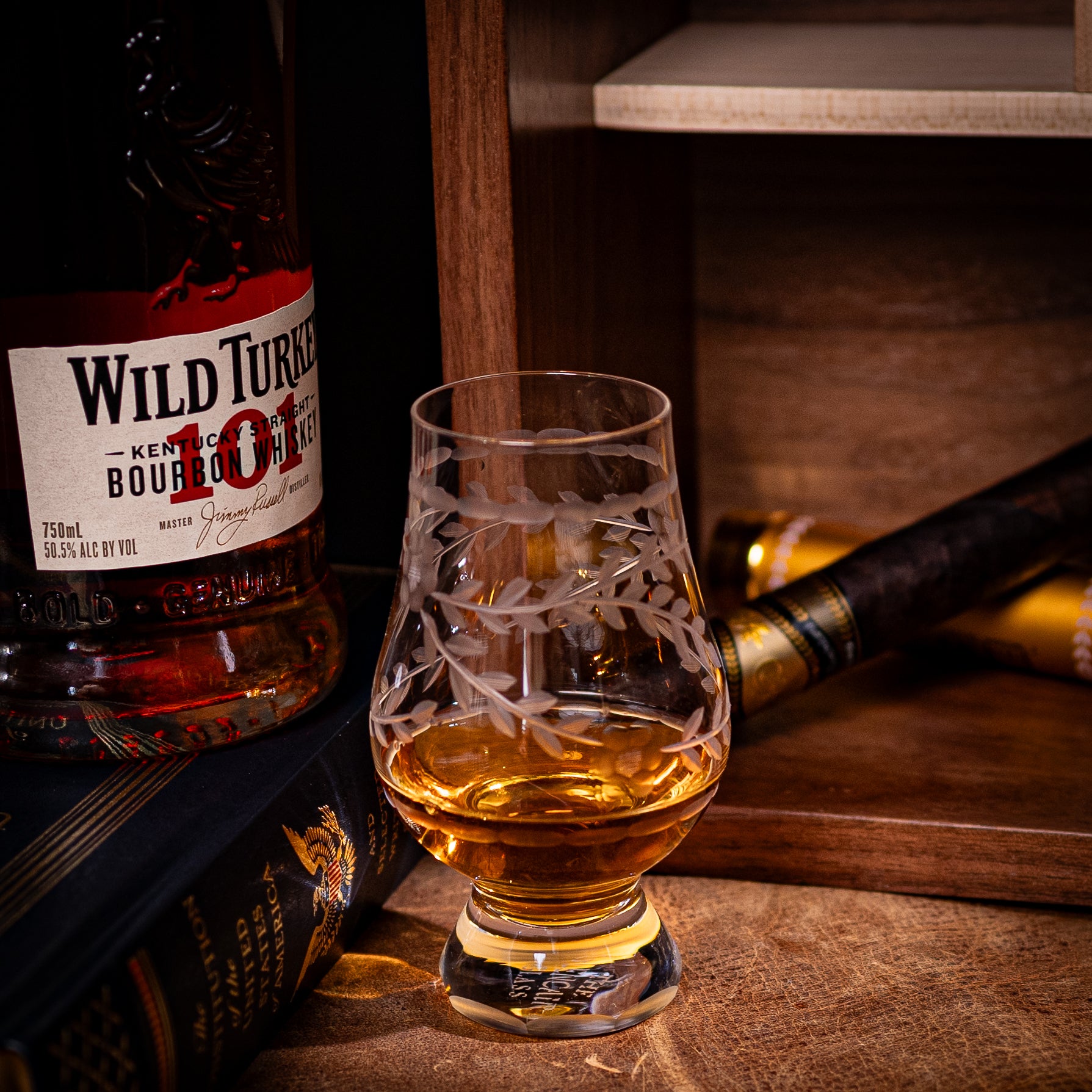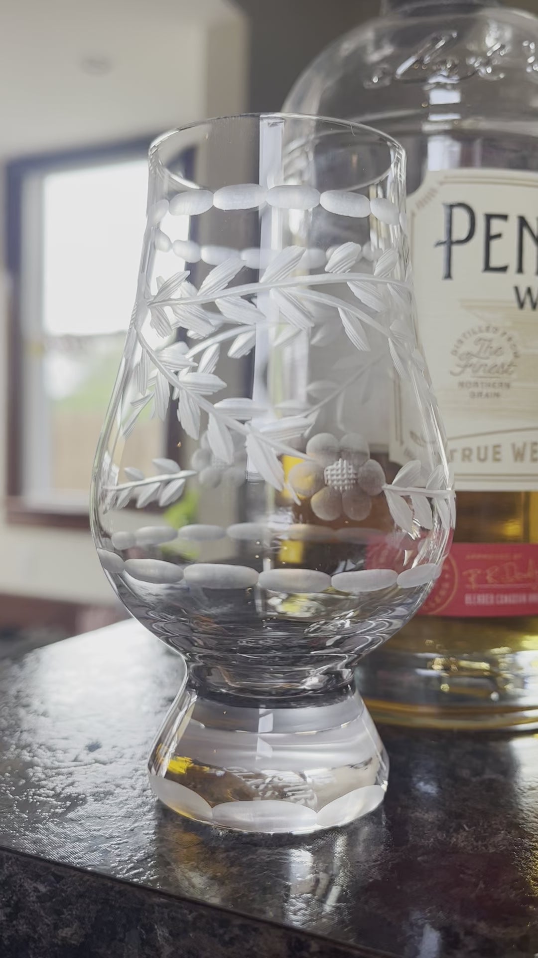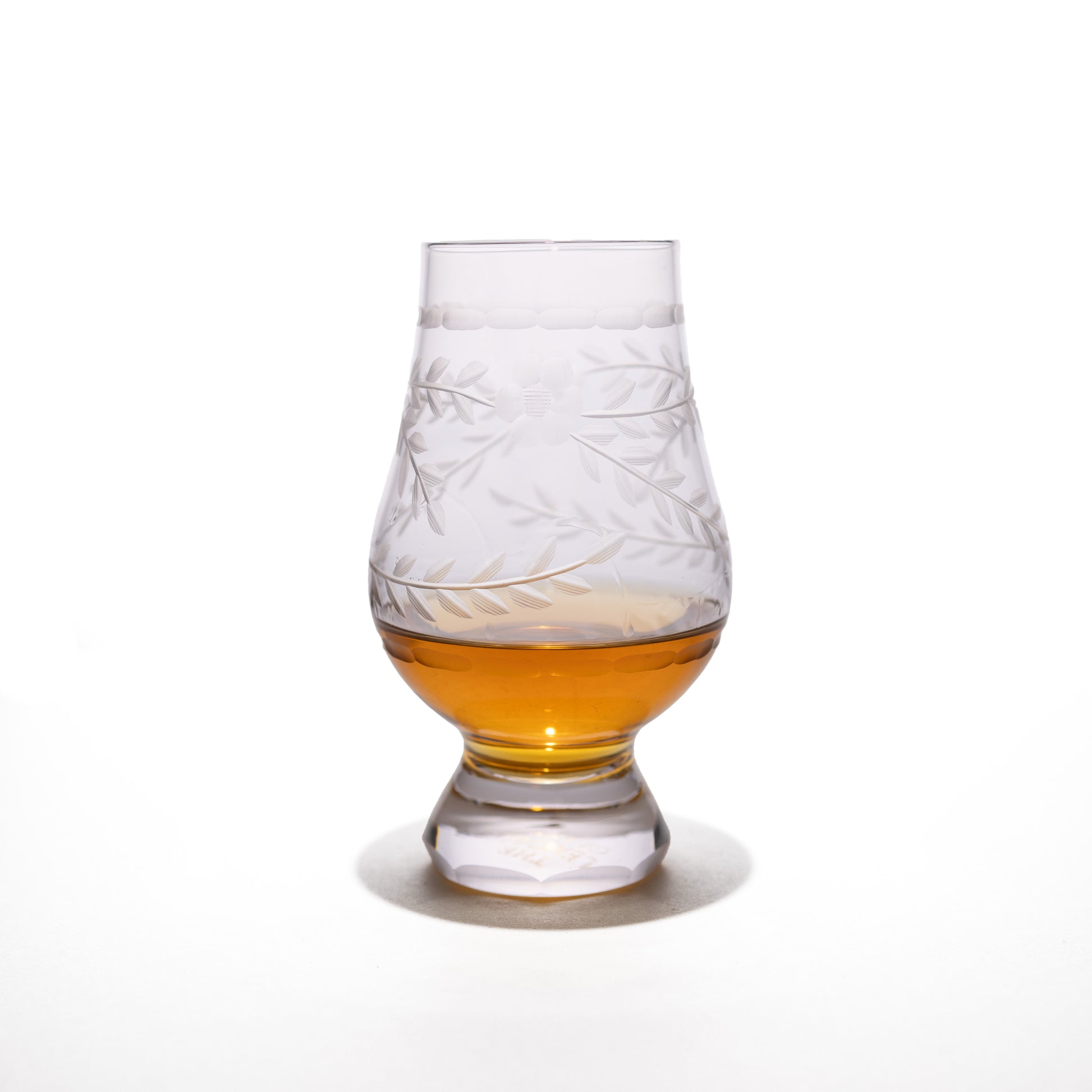 Botanical Buzz Glencairn glasses are inspired by the splendor of nature, crafted with intricate vines and flowers winding around the glass. Olive-shaped edge cuts and scalloped feet offer a unique touch of elegance. Cut and designed with a stone wheel lathe, each glass is a one-of-a-kind piece of art. These glasses make a perfect addition to any barware collection or as a special gift to someone who appreciates nature and superior craftsmanship.