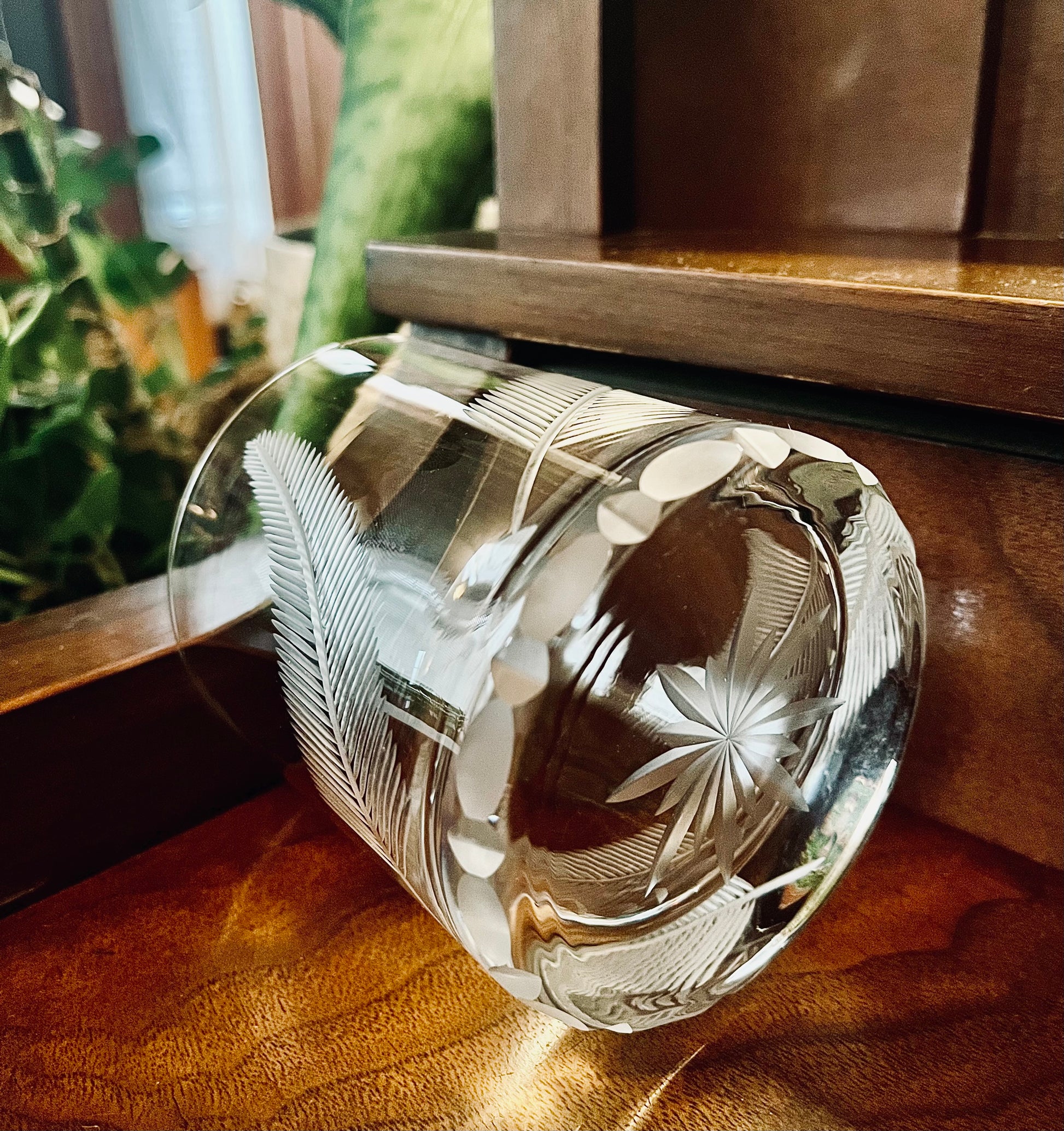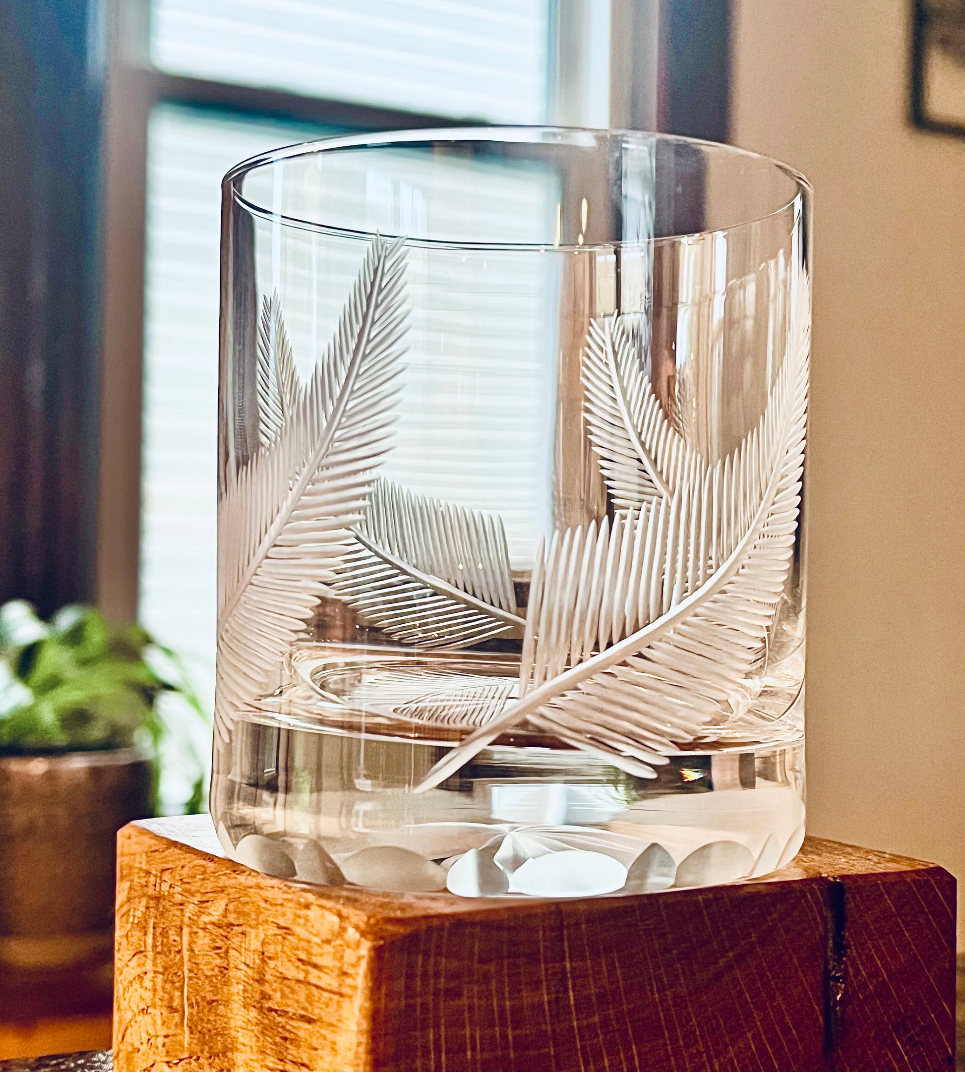 Experience luxury barware with Falcon Rocks. Featuring a unique cut feather pattern with a scalloped foot, these hand crafted rocks glasses are one of a kind. Enhance your home bar with Falcon Rocks' unique style and sophistication.