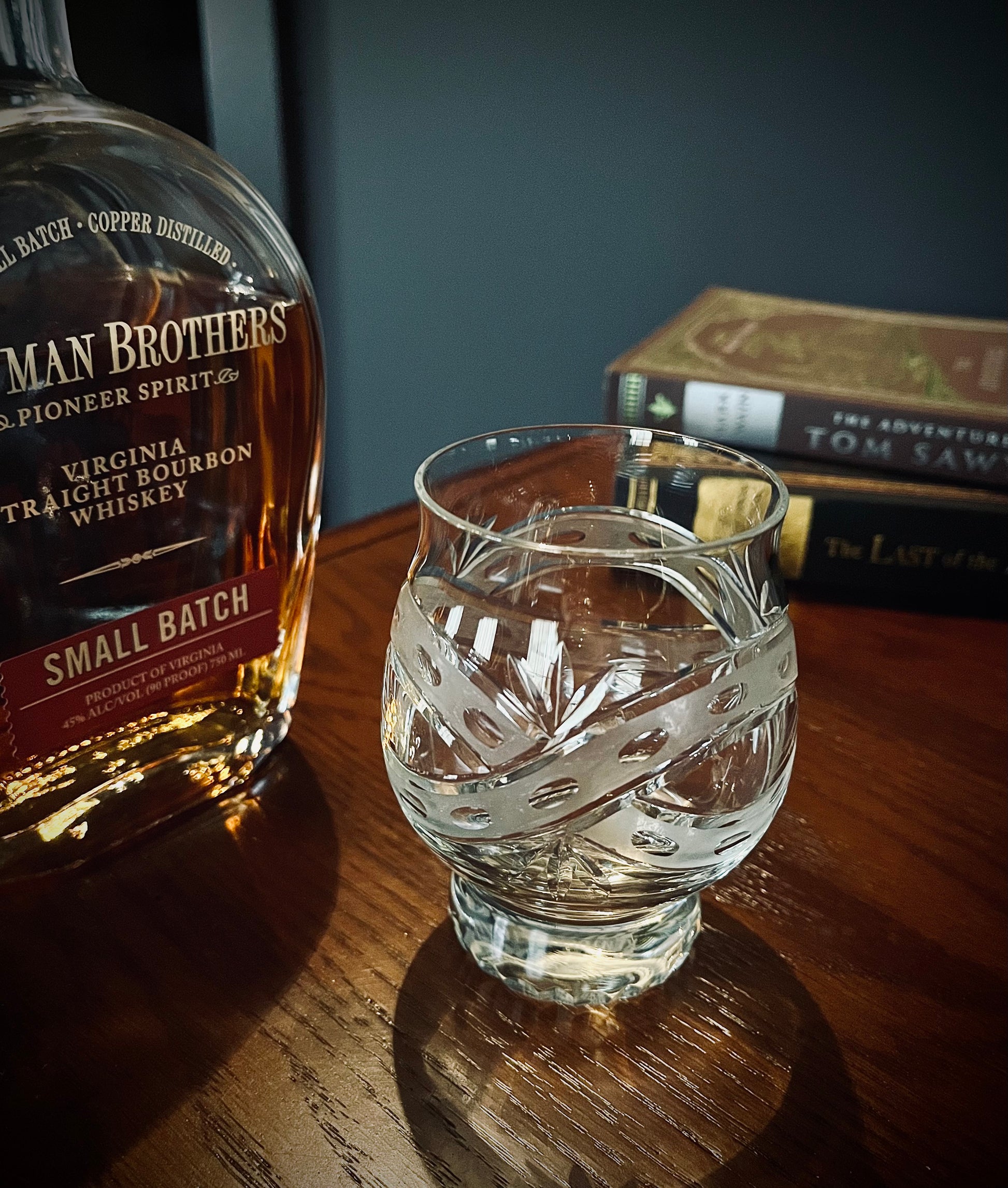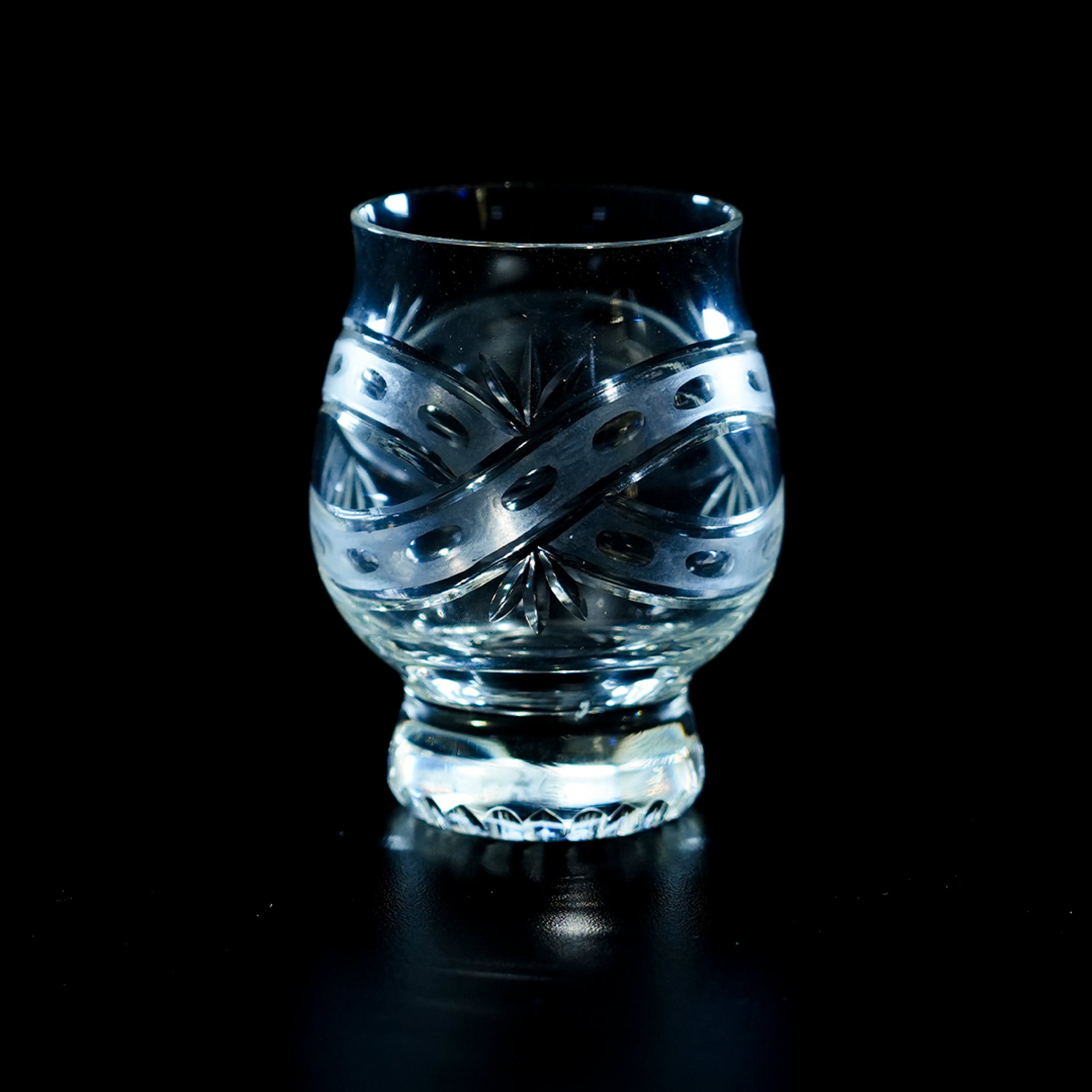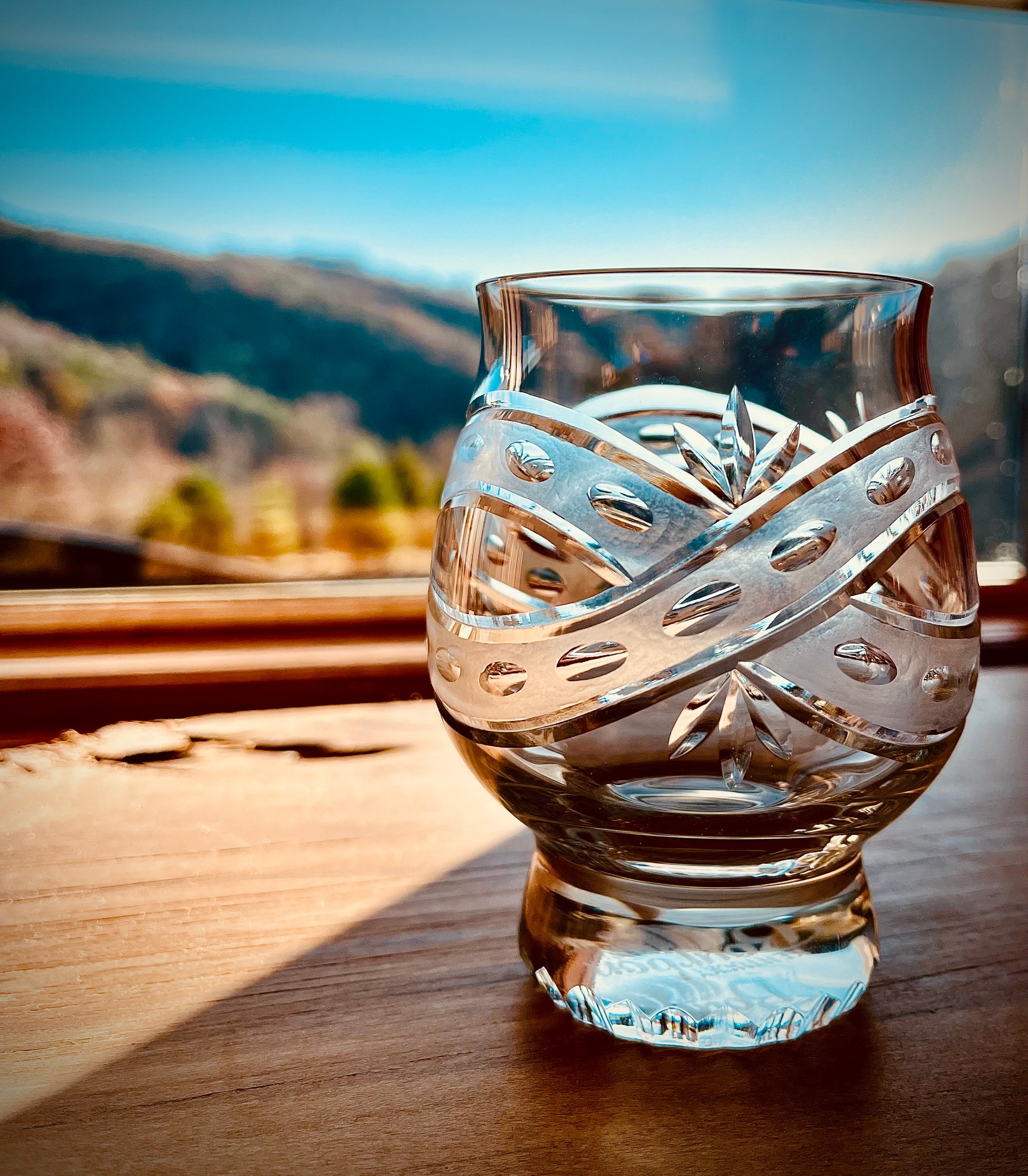 The "Hooley" design is a stunning and unique pattern inspired by Celtic style. The intricate design weaves over and under itself with polished and unpolished techniques that create a beautiful contrast. Hand cut and polished using traditional crystal cutting techniques in Ohio, this piece is a true work of art that will hold your gaze and captivate your attention.