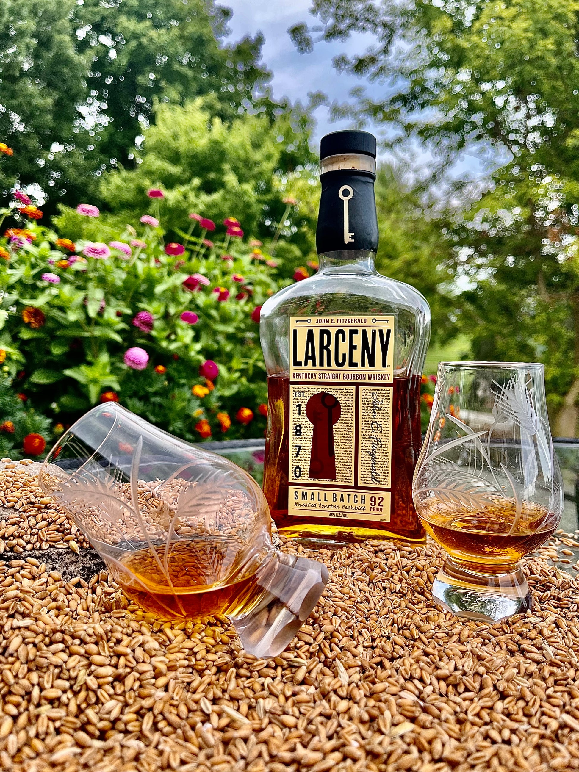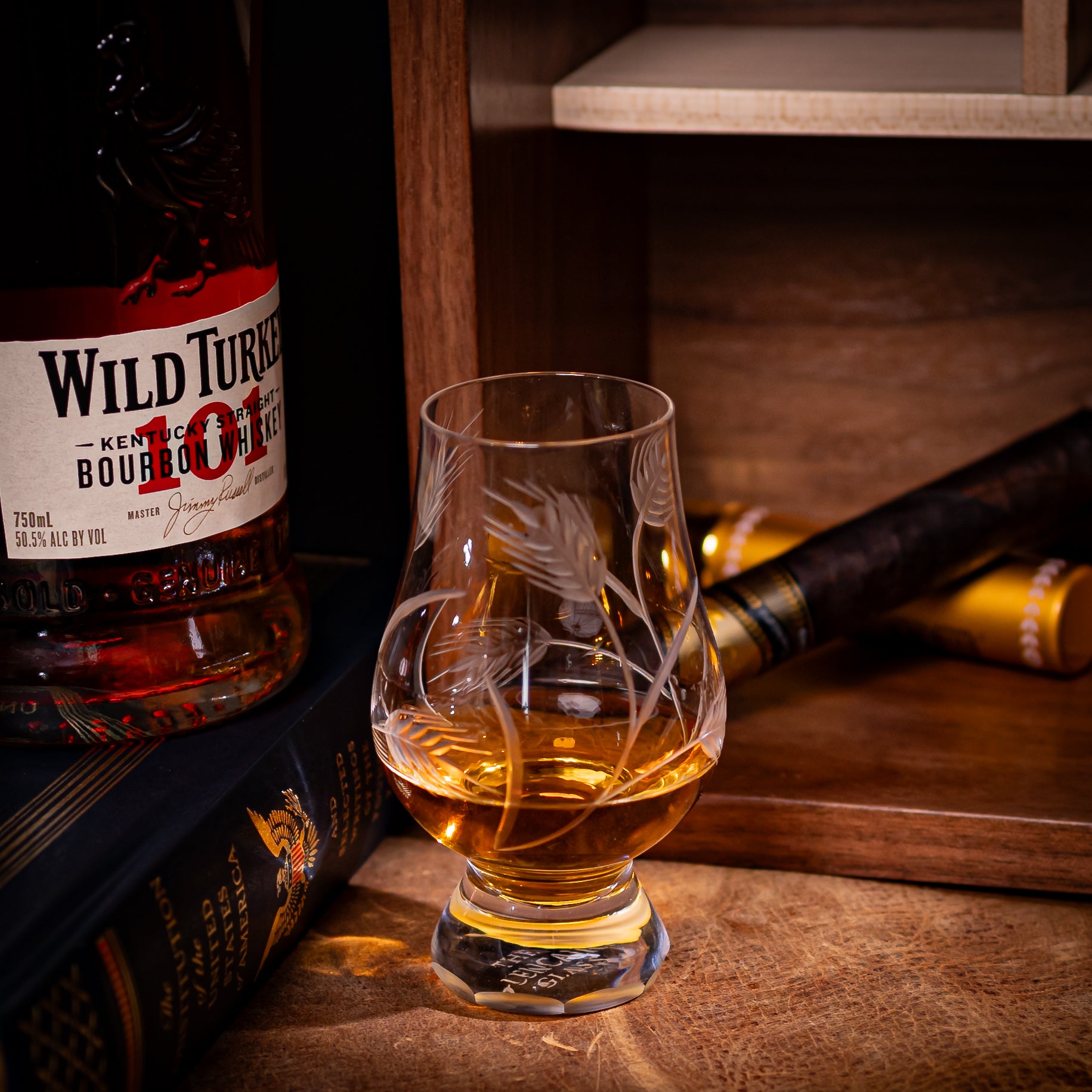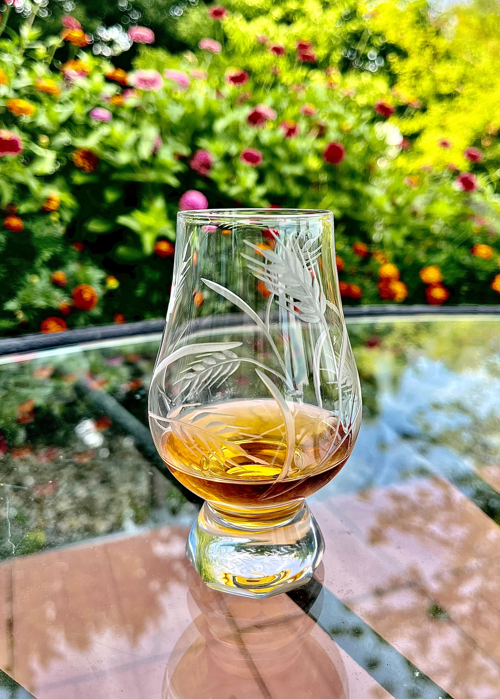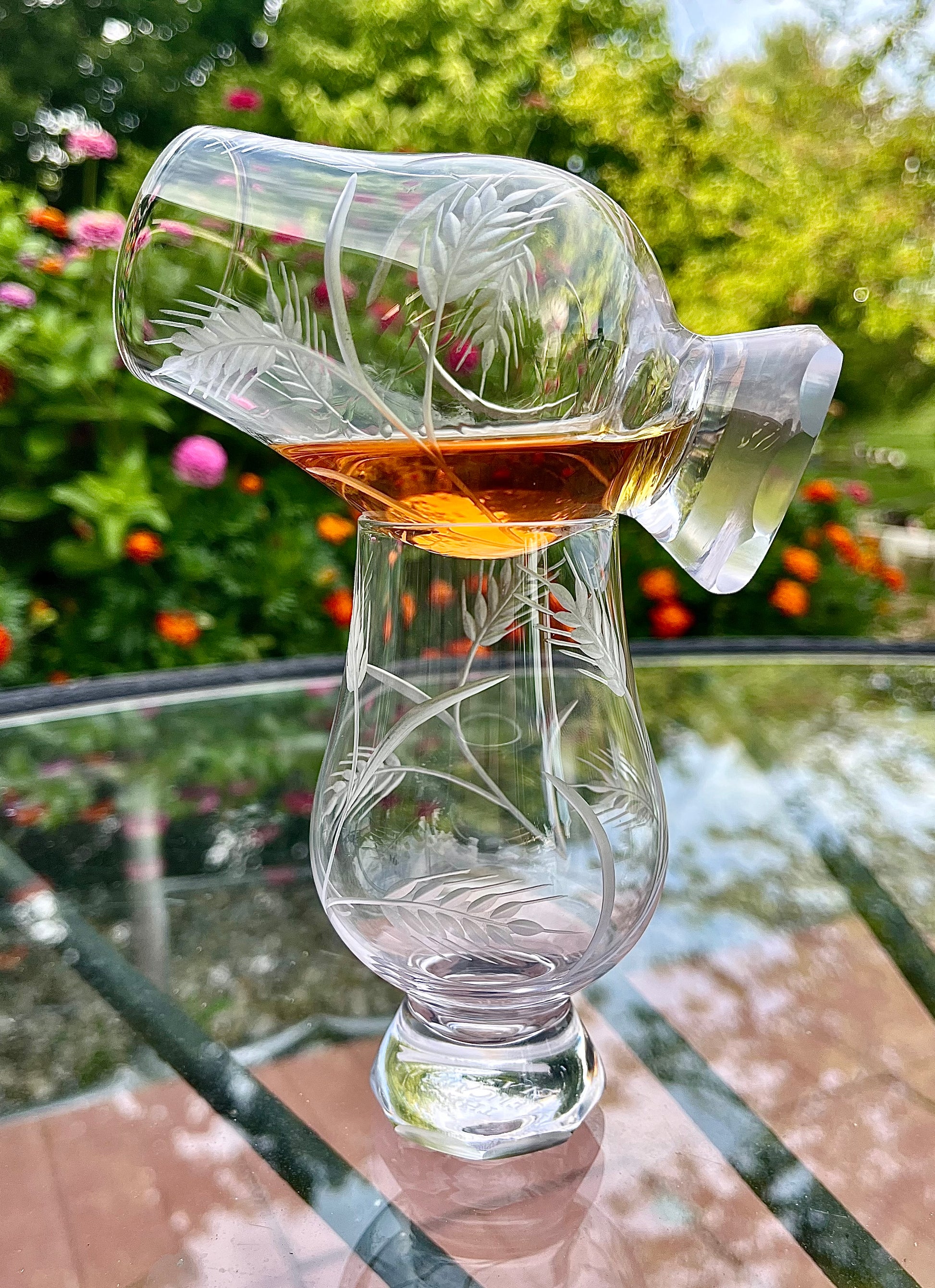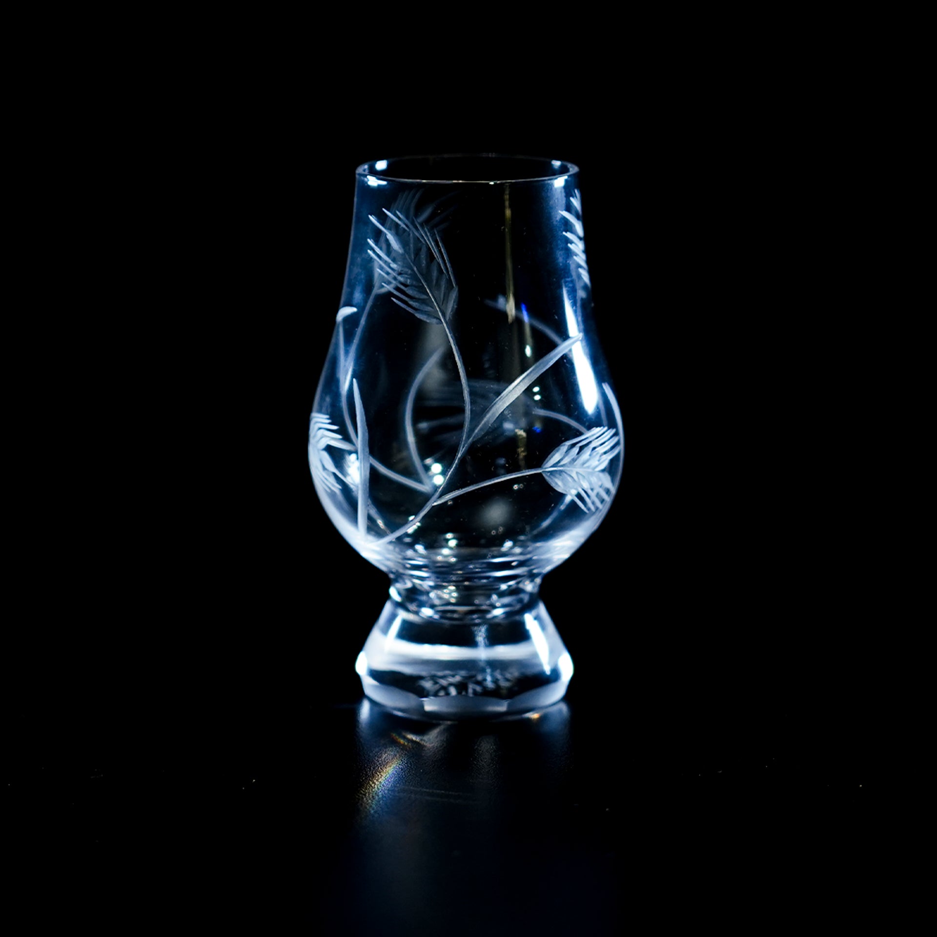 Indulge in the rich textures of wheat and barley as they encircle your favorite spirit in this one-of-a-kind hand-cut Glencairn glass. Inspired by the fields of golden grains that stretch across the horizon, each glass is meticulously crafted by hand, bringing a unique and artistic touch to your drinking experience. With its intricate design and expert craftsmanship, this glass is not only a functional piece but also a stunning work of art that's perfect for collectors and enthusiasts alike. Enjoy your favorite whiskey, scotch, or bourbon in style with "Grain Bin" and savor every moment of your drinking experience!