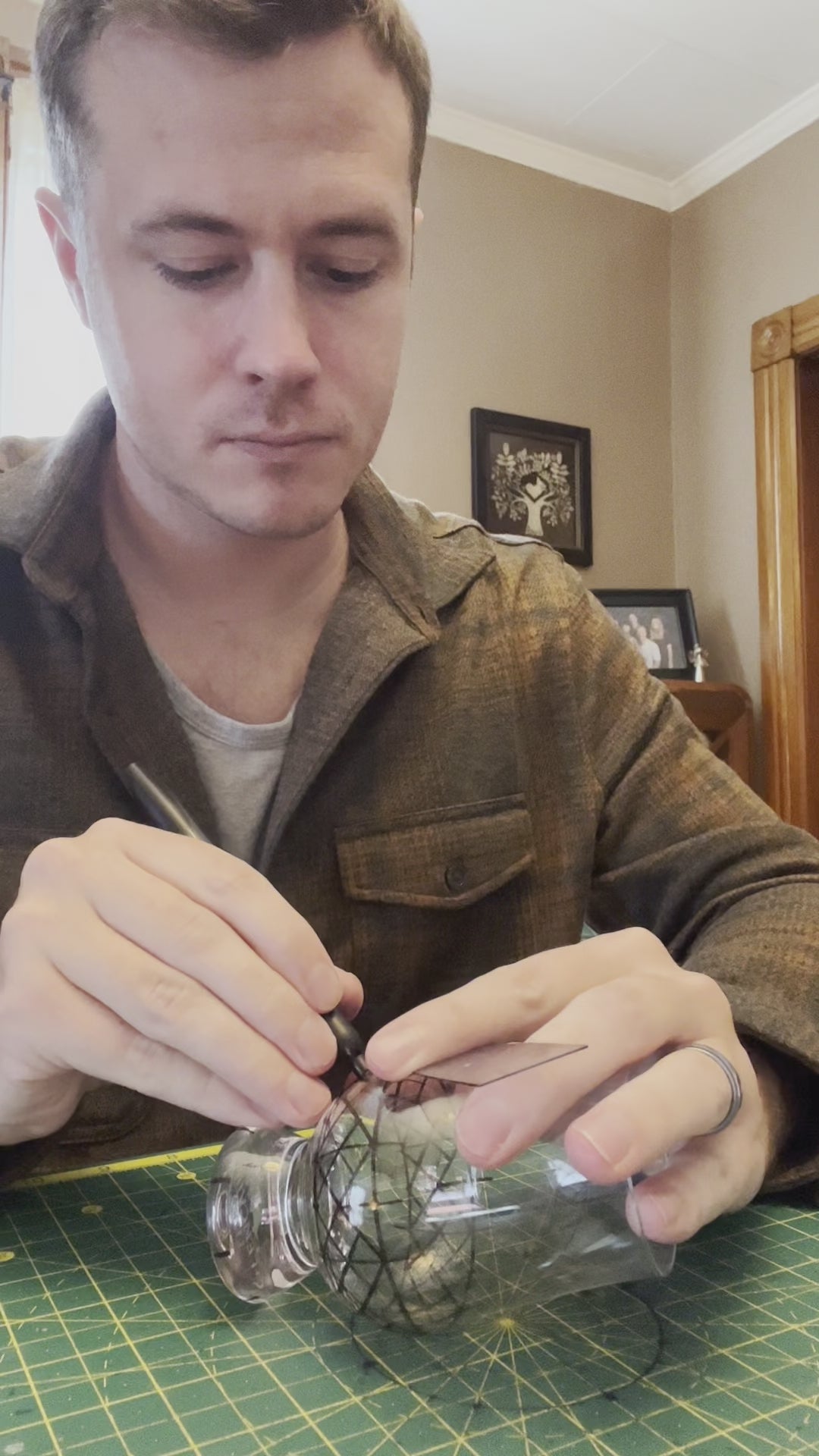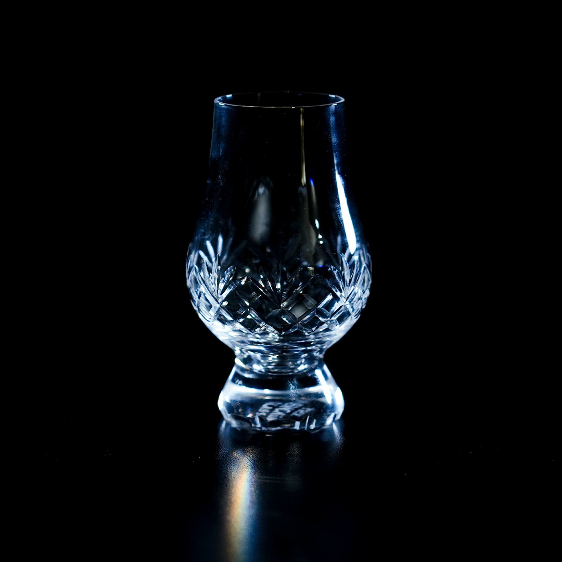 Designed and cut by hand on a stone wheel lathe, Artist Aaron Gooding uses old glass engraving techniques to render the intricate pattern you see. This Glencairn is adorned in a diamond pattern highlighted by a cut and scalloped foot.