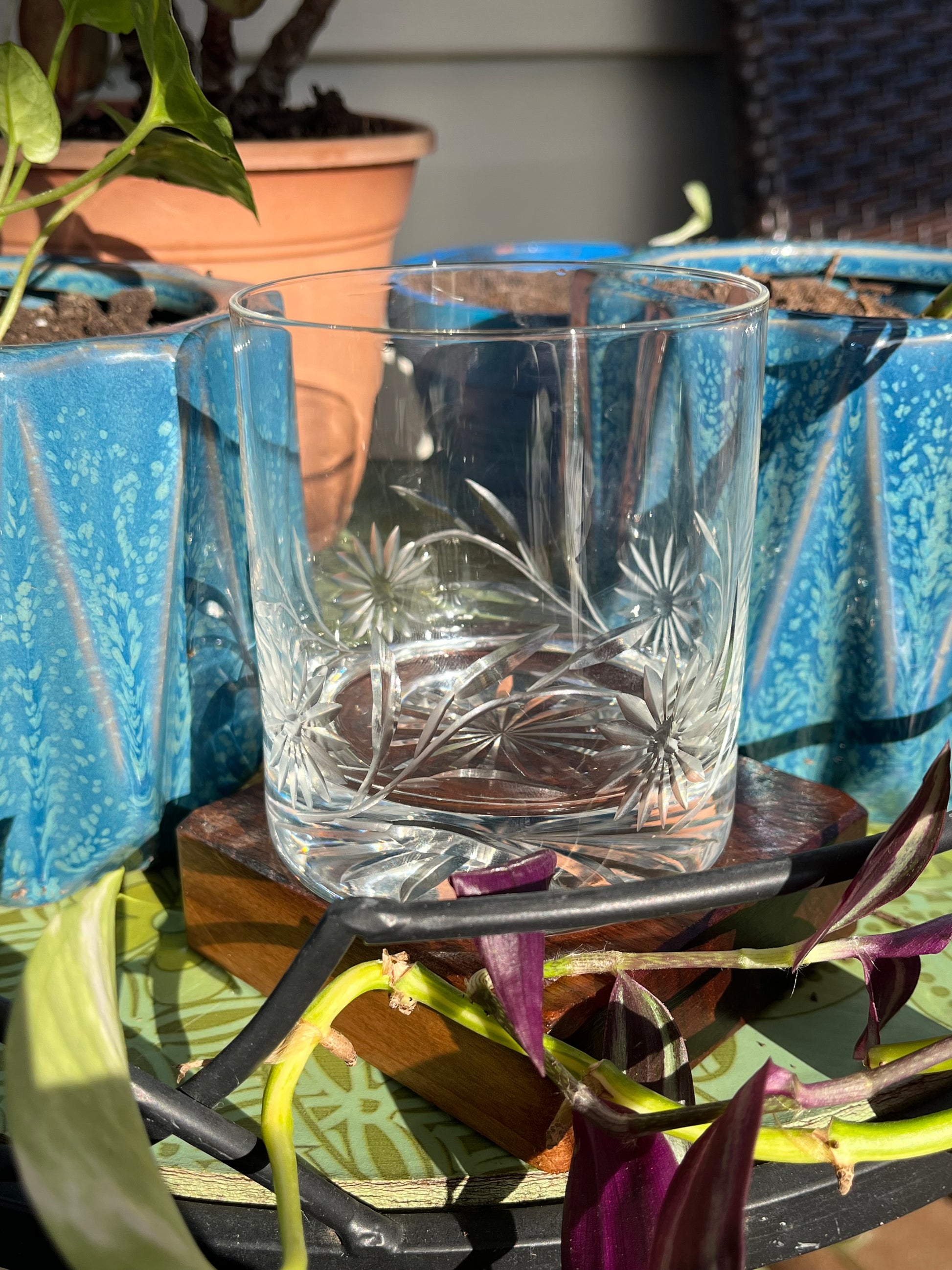 A swirling arrangement of flowers makes a captivating classic pattern on this rocks glass that celebrates spring!