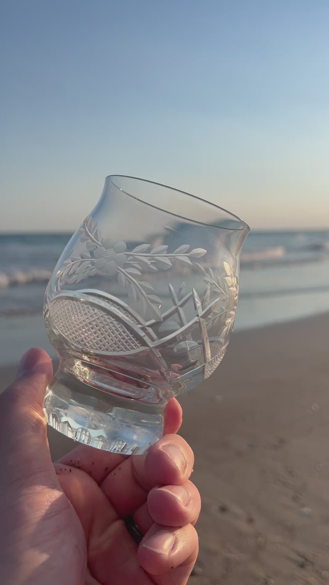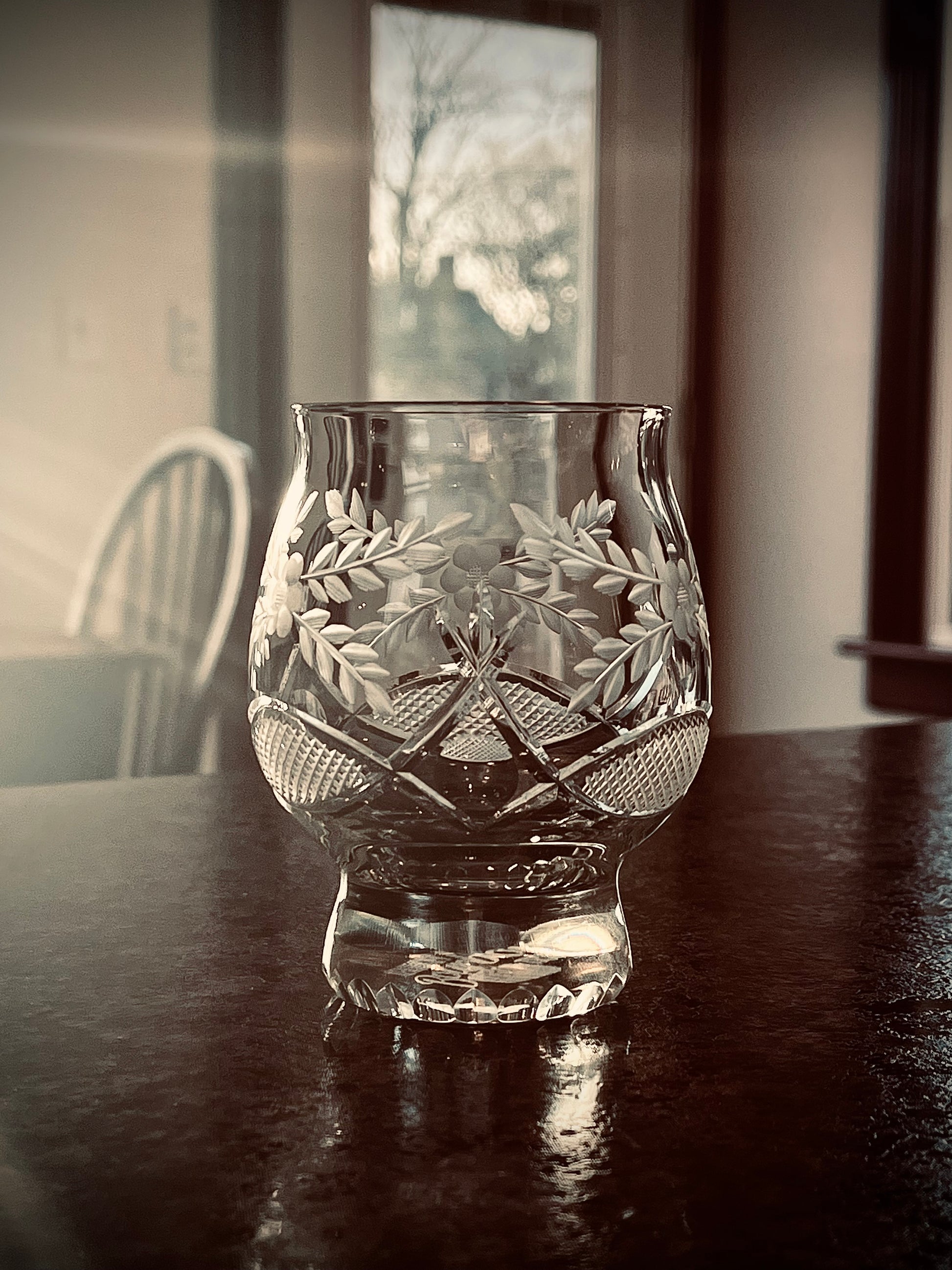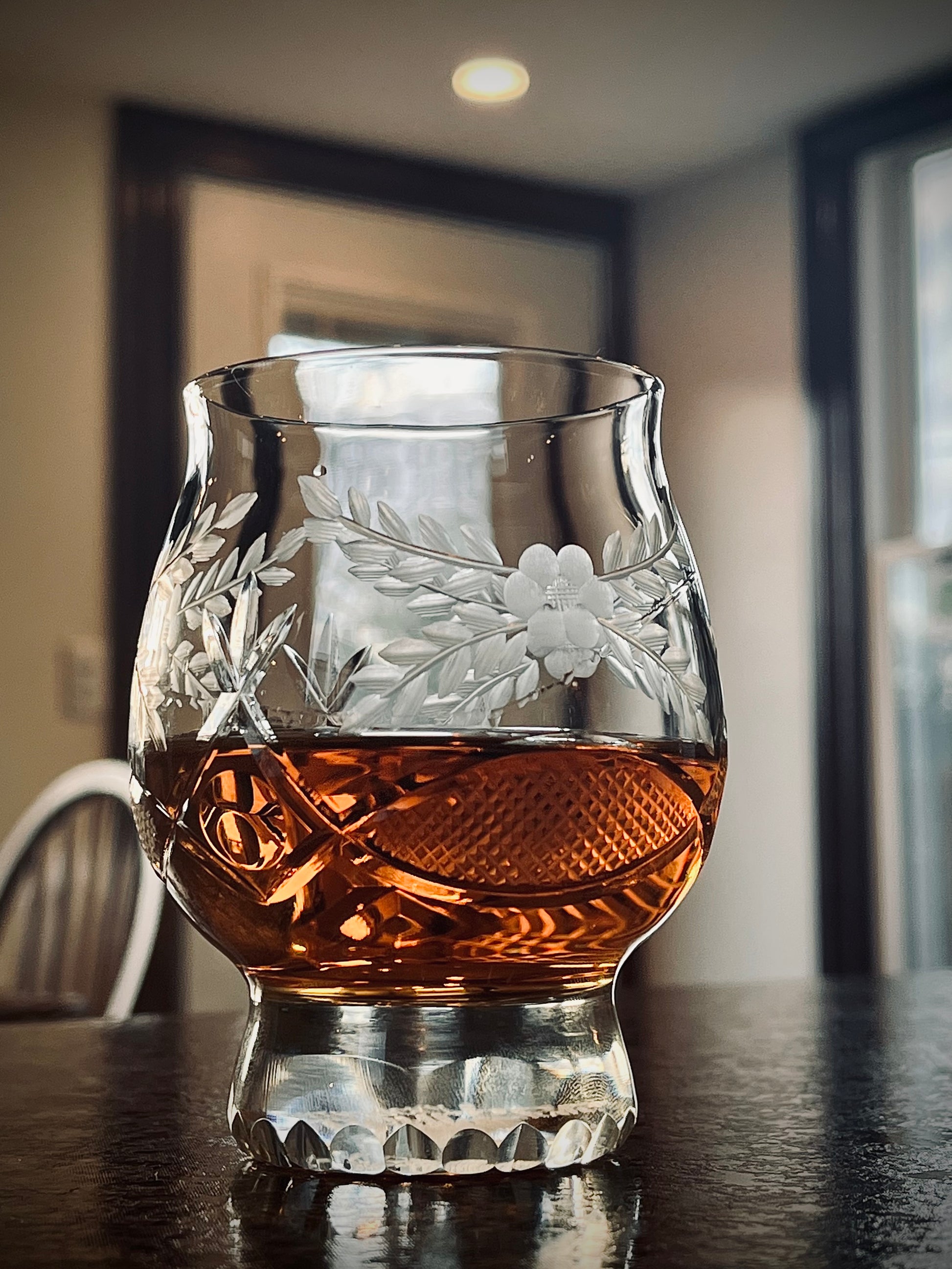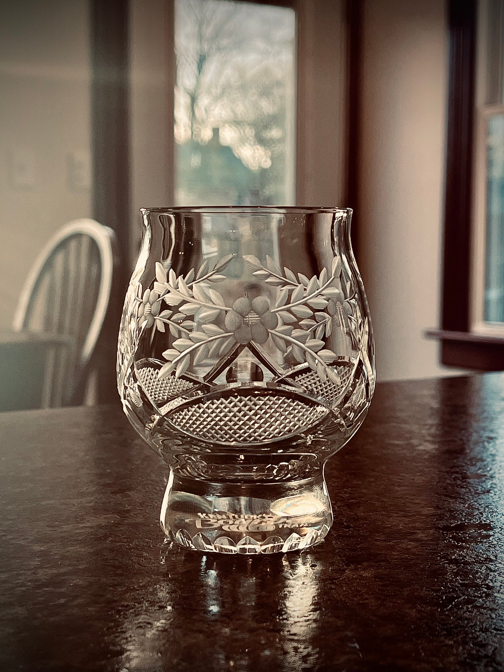Featuring wheel engraved flowers, a stunning pattern of polished cuts and fine diamonds and a scalloped foot, these Libbey Kentucky Bourbon Trail Glasses are a rare take on the beautiful artform or wheel engraving. These are the only cut versions of this glass in the world.